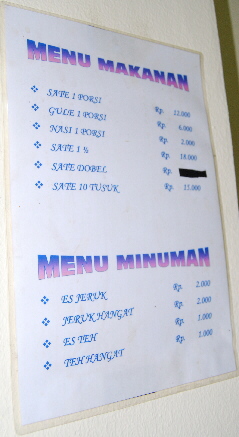 | 食べ物 | サテ1人前 | 12000 | 8本です |