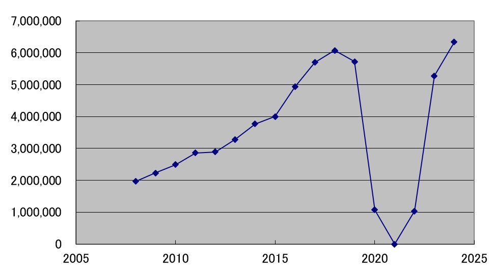 昨年(2024)はロナ前より多い633万人でした。2025年はトランプショックでどうなるんでしょ?