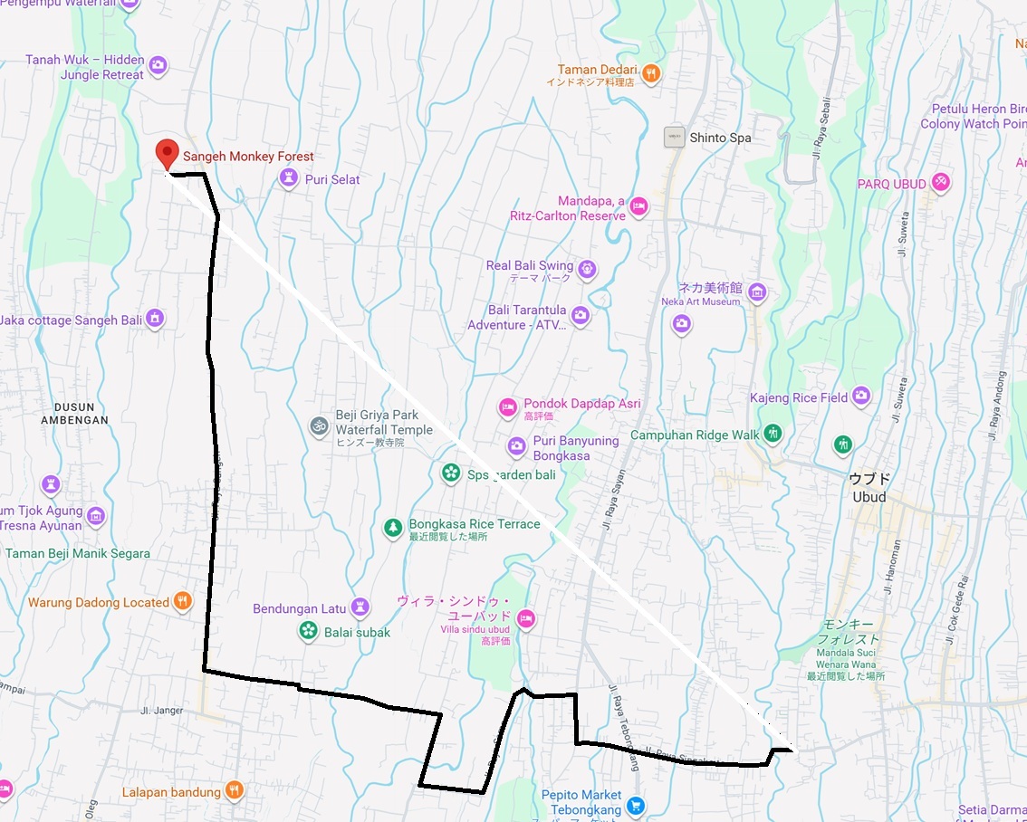 手元の2005年版Bali Atlasにも「MonkeyForest&PuraBukiSari」と明記ある