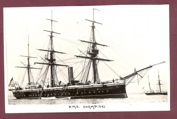 今朝早く英国艦が遠くに姿を現した。9:00頃に停泊しに来てようやくH.M.S.Champion 艦長Powlettと判明した。